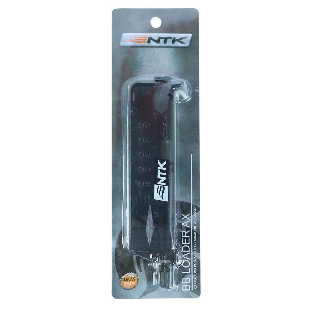 O Loader AX é o novo carregador de munição para airsoft da linha tática. Produzido em polímero resistente, amplamente utilizado em jogos de airsoft, aumenta a agilidade e o ganho de tempo no reabastecimento dos equipamentos. Ideal para todos os tipos de jogos, pois é pequeno e compacto. Suporta armazenamento de até 100 Esferas Plásticas BB's de calibre 6mm. Compatível: Praticamente com todos os modelos de magazines para Airsoft 6mm. Características: - Material: Polímero resistente - Medida: Aproximadamente 12cm - Capacidade: 100 BBs de 6mm - Fabricante: NTK - Modelo: AX 100 - Peso: 40g - Cor: Fumê Contém: - 1 Carregador Speed Loader AX 100 NTK